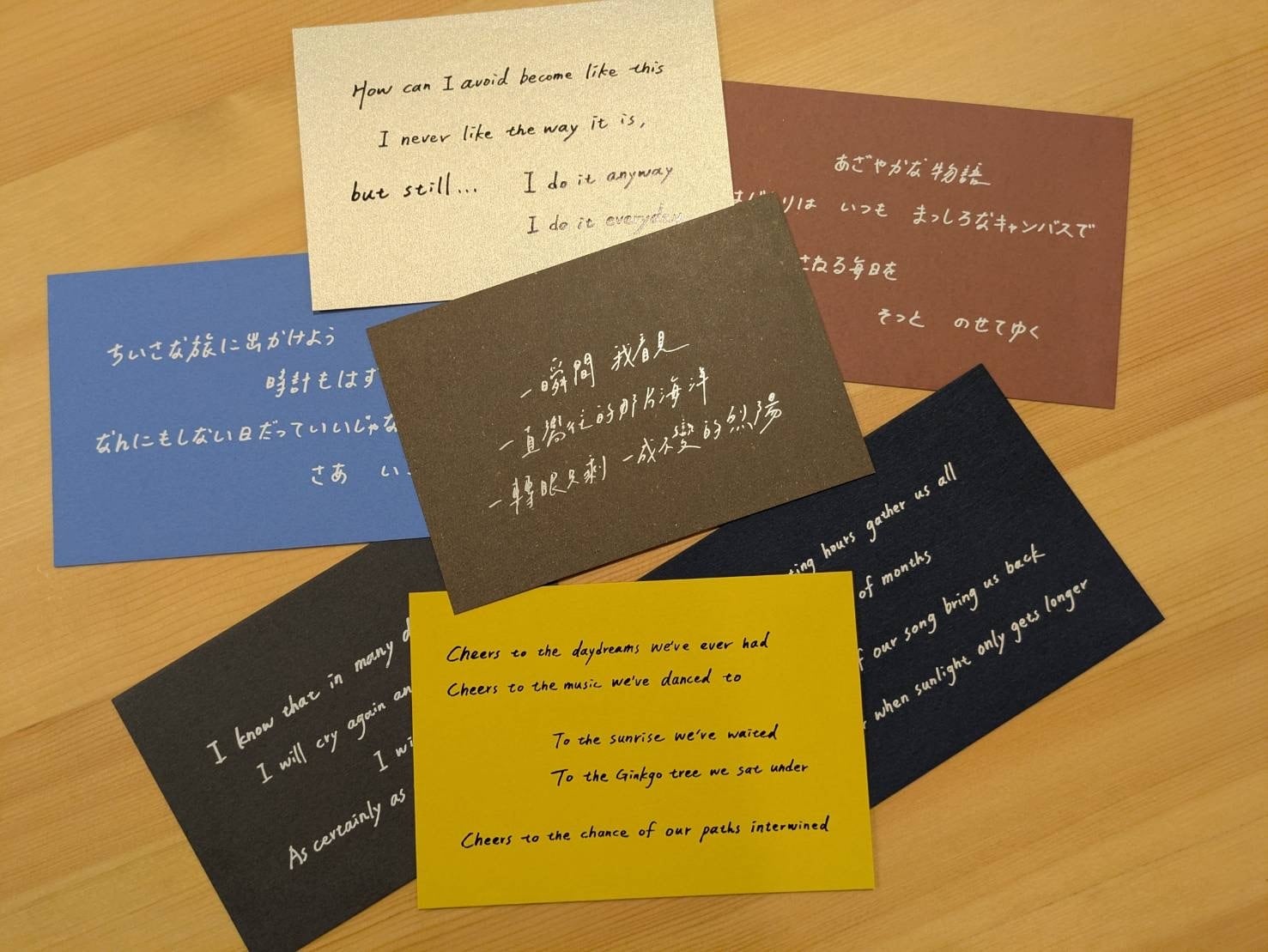 一曲ごとに歌詞の一節がデザインされたカードをスマートフォンなどで読み取ると、音楽と共に「あなたの景色」の中に歌詞の全貌が浮かび上がります。